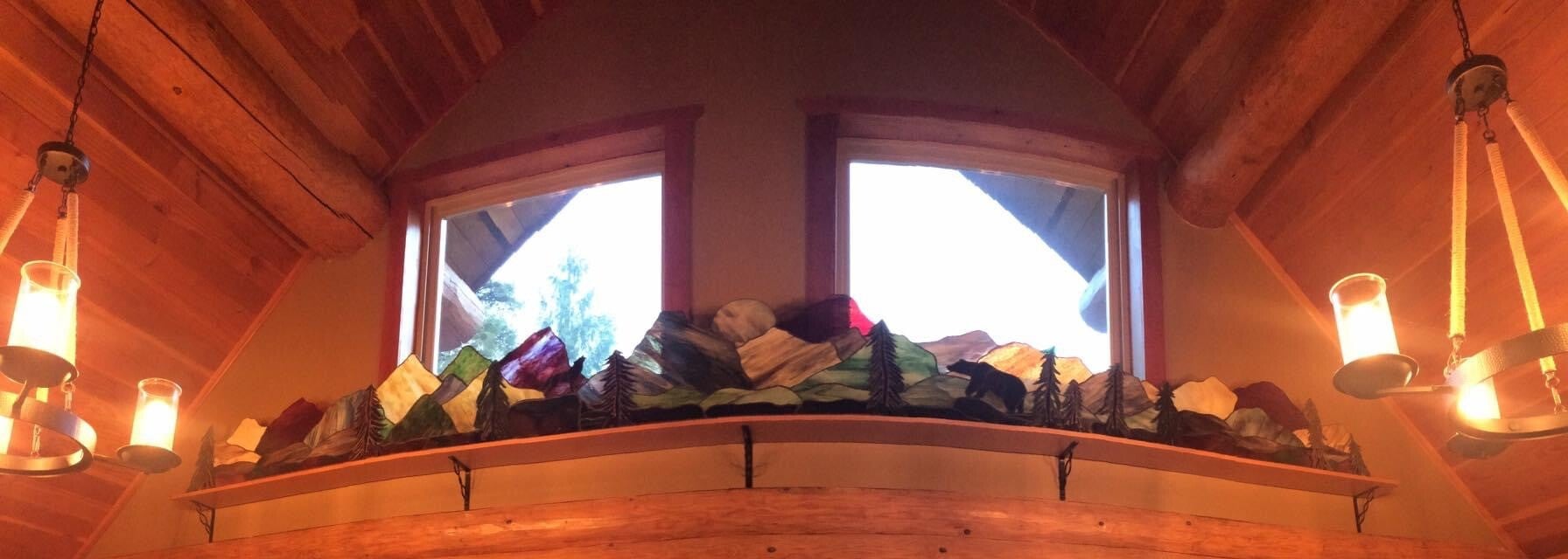 The mountain scene I had commissioned several years ago that is over 16 ft long, built in in 4 panels that join to create this unique piece. Just Stunning!